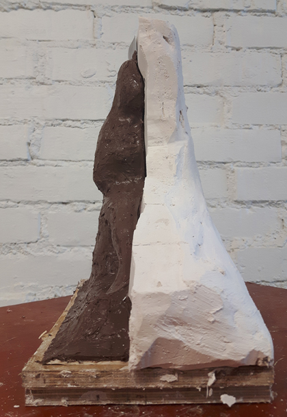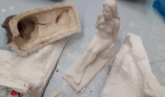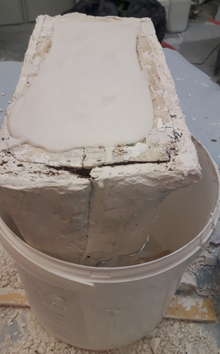 Silikonilla peitetty pienoismalli paljastuu kipsimuotin sisältä.